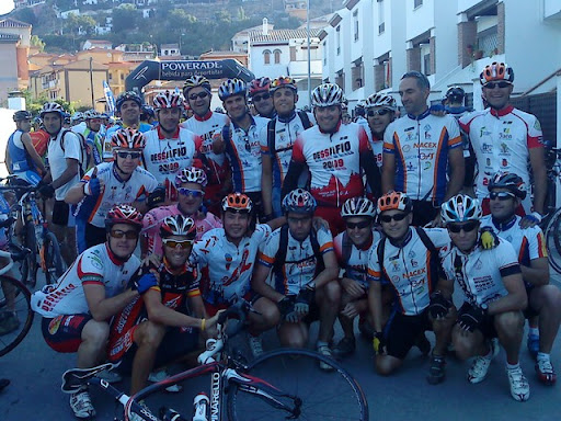 En la salida nos encontramos un numeroso grupo de ciclistas de la Sierra Sur de Jaén. Acabábamos de entrar en el cajón de salida y nos estábamos haciendo unas fotos cuando pasó a nuestro lado Alejandro Valverde, invitado de honor a la prueba. Ni corto ni perezoso, mi amigo Jaime cogió a Alejandro por los hombros y lo puso a posar con nosotros para la foto. El pobre Alejandro, con su sonrisa permanente, no puso ni una objeción y se dejó arropar. Fue muy emocionante para nosotros contar con semejante compañero en la foto. Gracias, Alejandro!!